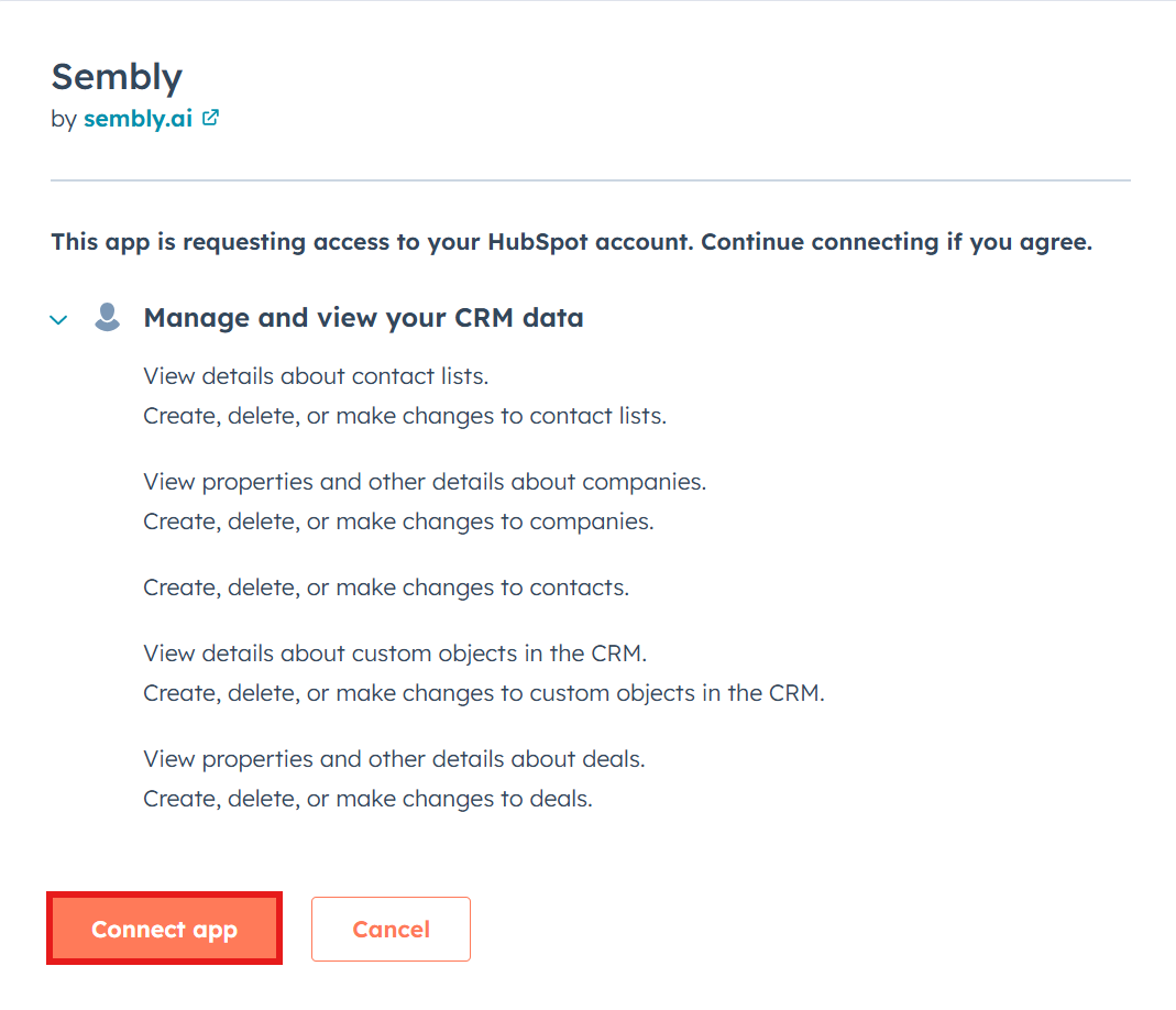 Once you click "Connect", a new webpage will pop up offering you to choose which HubSpot account you want to connect your Sembly account to