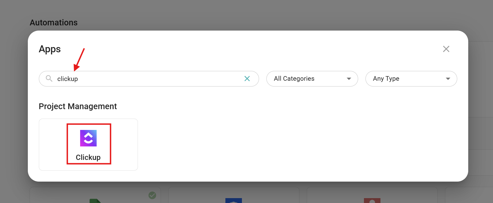 Then, you can find ClickUp in the Project Management category or simply find it using the “Search” field