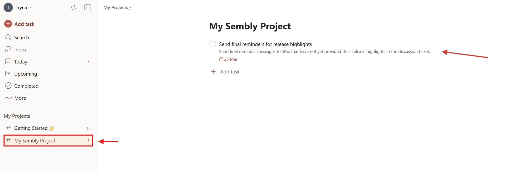 Sembly allows you to automatically send Tasks from your meetings to Todoist. This is useful for creating actionable tasks, setting reminders, and making sure follow-ups from your conversations are captured and tracked in your daily workflow.
