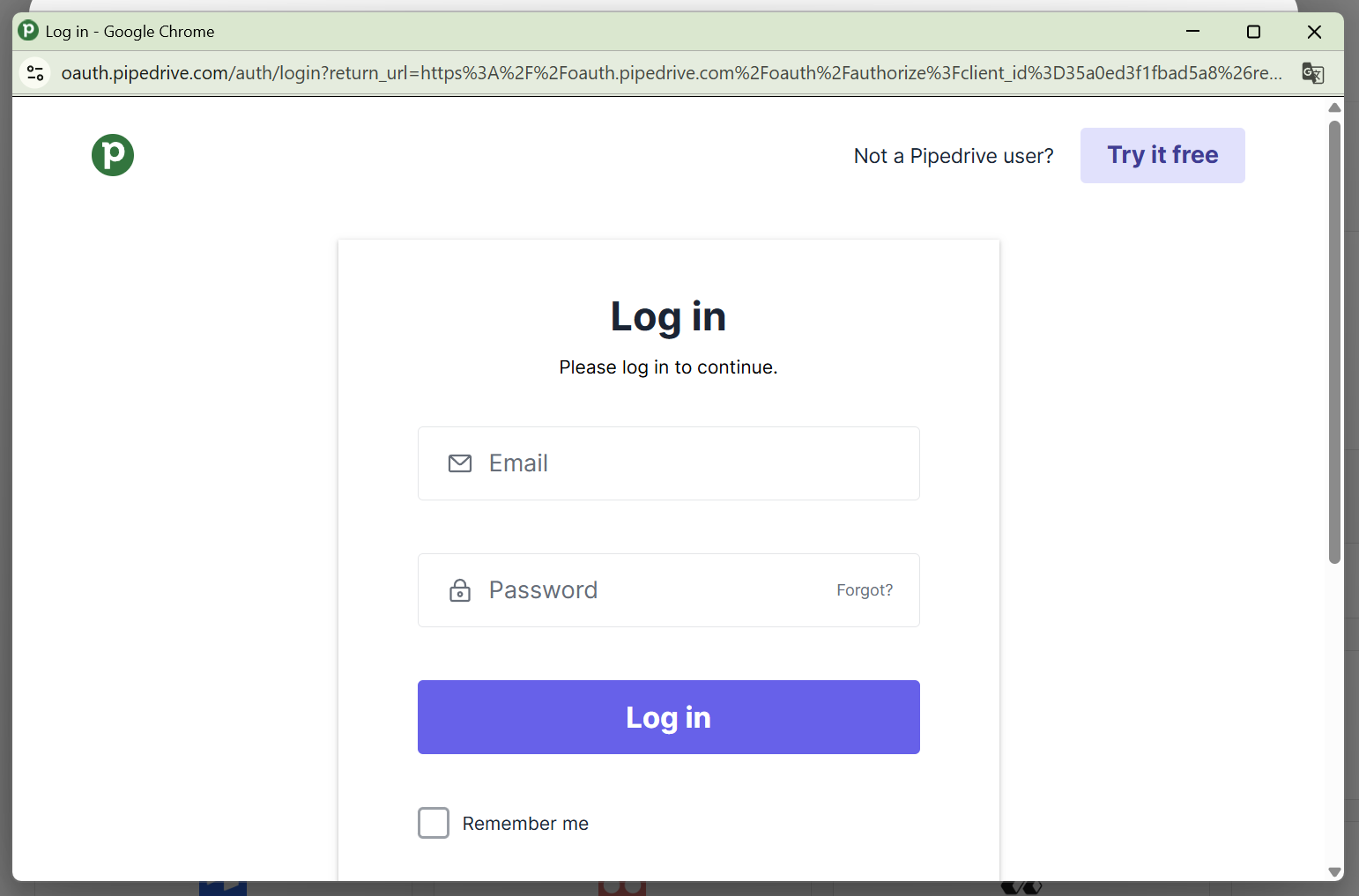 Once you click "Connect", a new webpage will pop up offering you to connect to your Pipedrive account