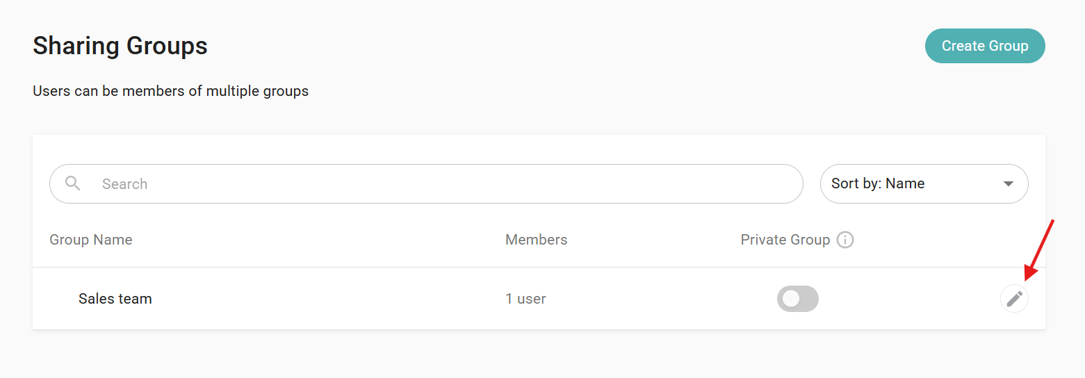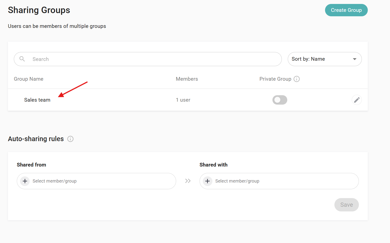 Only admins can create and manage Sharing Groups. End users (members) cannot modify these rules and they don't have access to view this section. A user can belong to multiple Sharing Groups. |