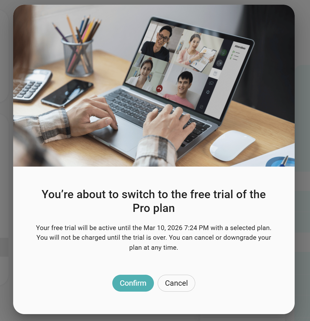 Select your plan and confirm your choice. If you have not already completed your payment information, you will be prompted to do so. You'll get a complimentary 7-day trial to experience the product's capabilities. You may cancel the subscription at any point before the trial ends to avoid the charge.